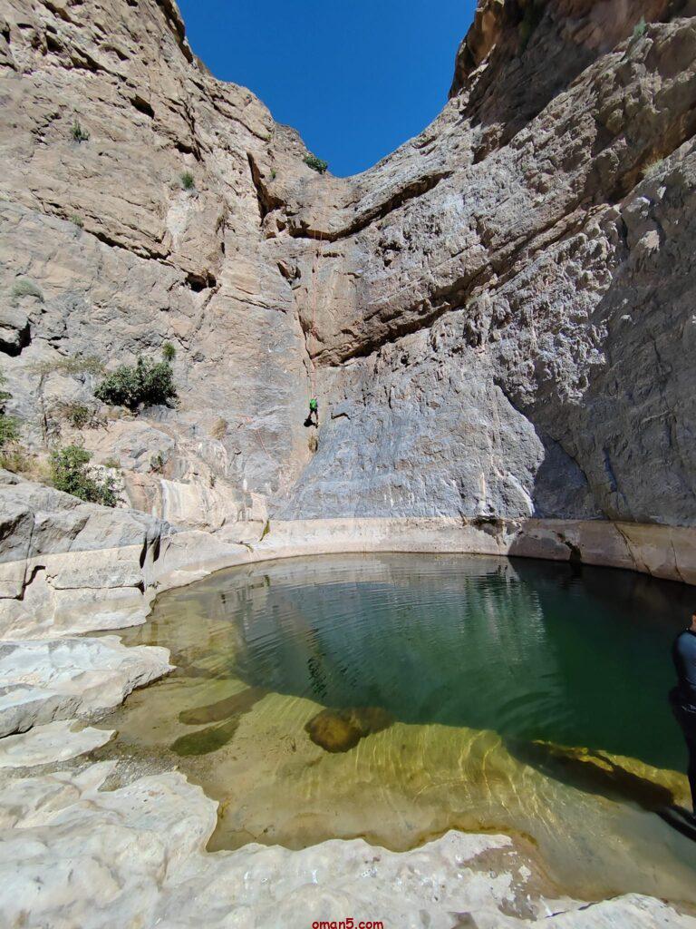 There are 7 abseils in total with the final drop being a 120m free hanging abseil. With lots of swimming in the natural pools and a 3 hour hike back to the car this wadi is definitely one for the physically fit!